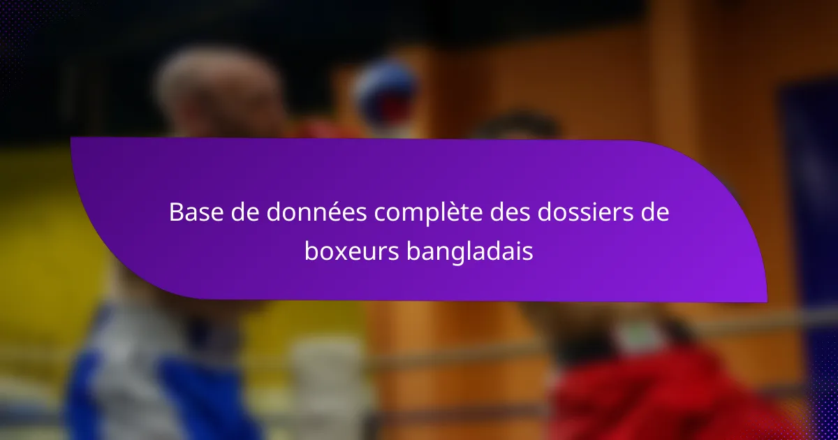 Les dossiers de boxeurs bangladais englobent des informations essentielles qui suivent la carrière d’un boxeur, y compris des détails personnels, des statistiques de combat et des accomplissements. Ces dossiers sont cruciaux pour évaluer la performance et l’héritage d’un combattant dans le sport.