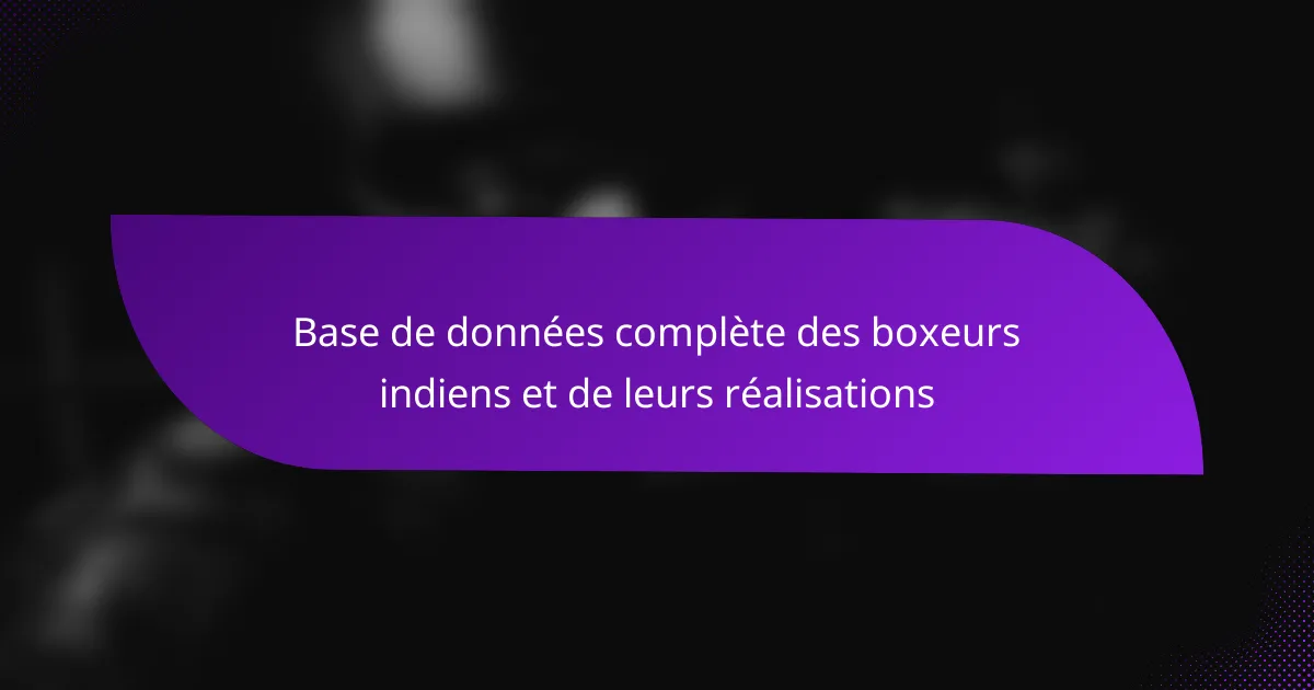 Évaluer la performance des boxeurs indiens implique d’analyser leurs compétences, leurs réalisations et leur impact global dans le sport. Les facteurs clés incluent leurs bilans de victoires et de défaites, les titres remportés et leur performance dans les combats amateurs et professionnels.