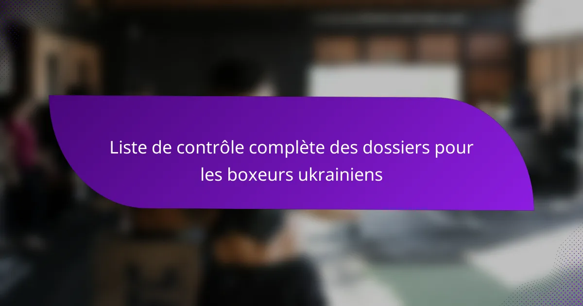 Une liste de contrôle complète pour les boxeurs ukrainiens est un outil systématique qui aide à suivre les performances, l’entraînement et les informations de santé d’un boxeur. Cette liste de contrôle garantit que toutes les données pertinentes sont organisées et accessibles, aidant au développement et à la gestion du boxeur.
