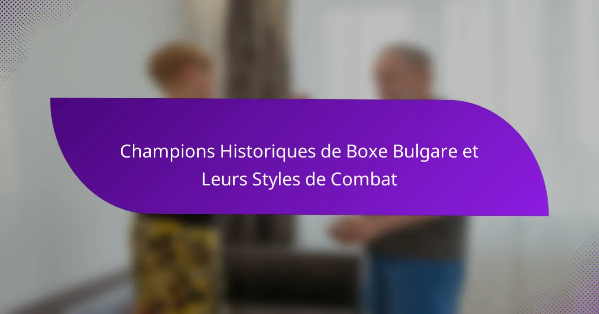 Les champions bulgares de boxe les plus notables dans l’histoire incluent Tervel Pulev, Kubrat Pulev, Dzhuneyt Kadir et Boyko Borisov. Ces athlètes ont apporté des contributions significatives au sport, mettant en avant des styles de combat uniques et réalisant un succès remarquable dans leurs carrières.